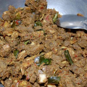 1. In the Malabar region, tamarind (puli) or vinegar is often added during marination in beef varattiyathu to give a tangy flavor.