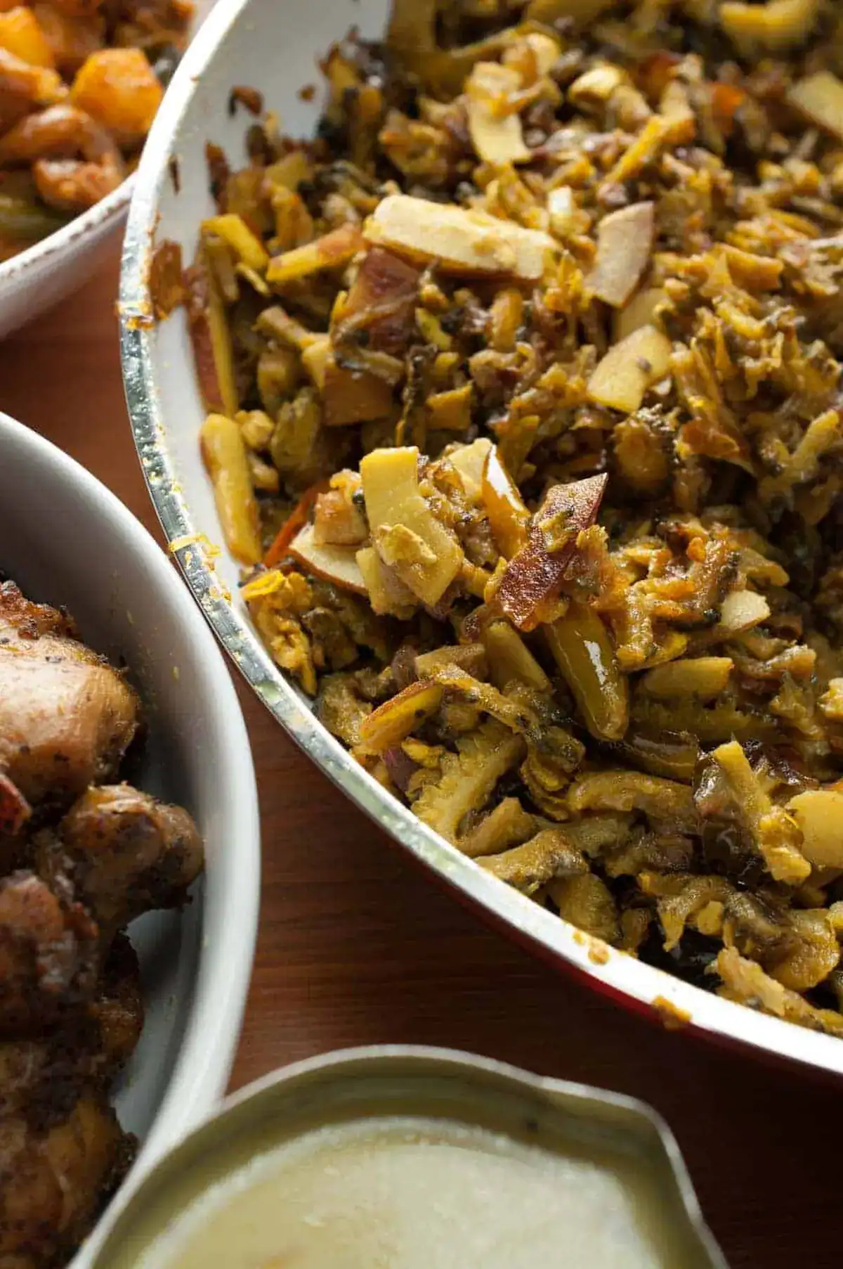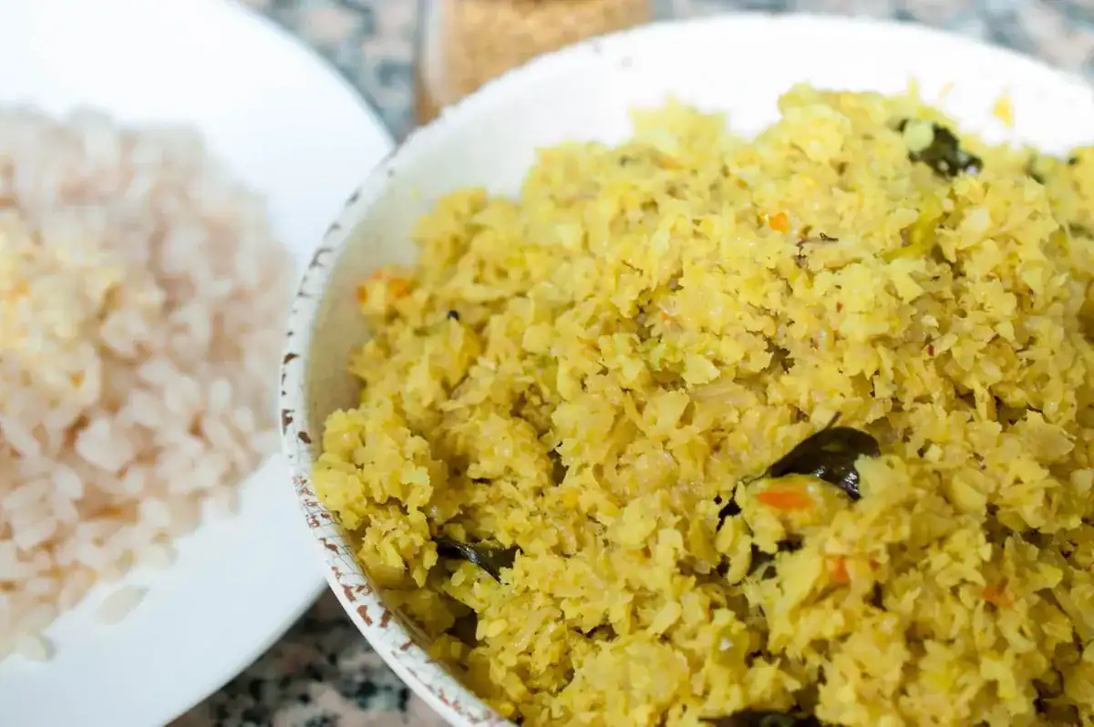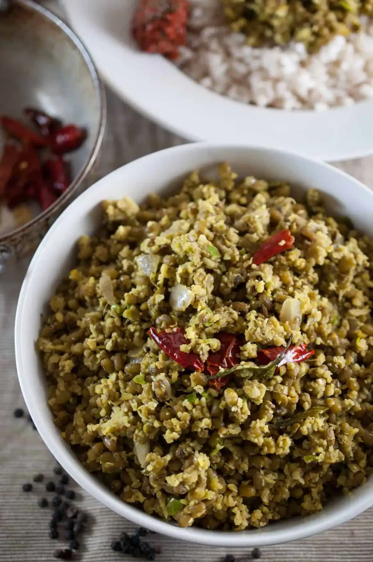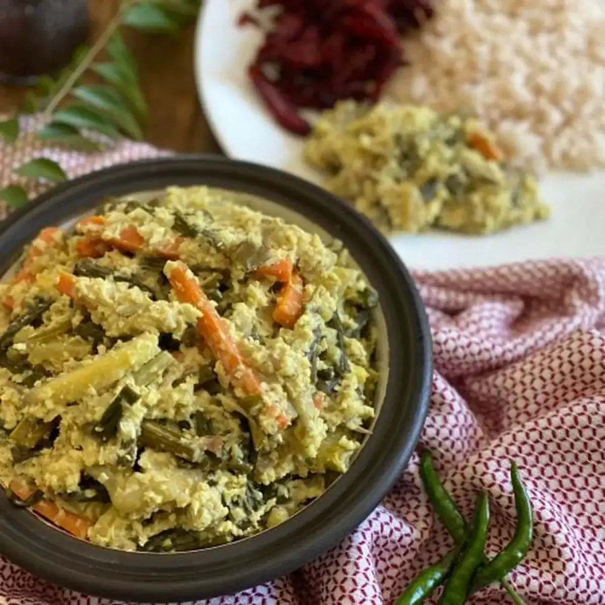 For your next sadya side dish, try a simple thoran like our Cabbage Thoran or Beans Thoran. Both pair well with rice and pachadi.