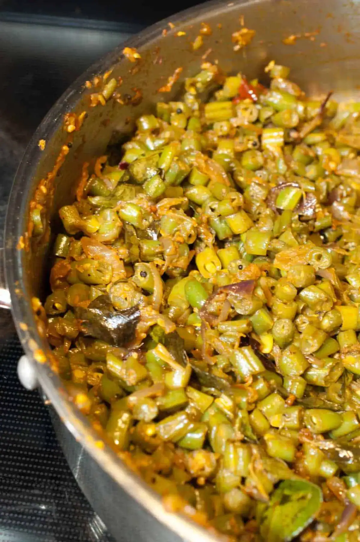You’ll also need turmeric powder, green chilli, sugar, yogurt, grated coconut, mustard seeds, cumin seeds, shallots, dried red chilli, and curry leaves. These are all simple pantry staples used in most Kerala kitchens.